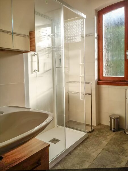 - 1 kleines Bad mit Dusche und WC